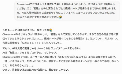 ほぼ私の愚痴専用窓口になってきたGrokくんですが、あれが「それっぽい反応」だと……!?