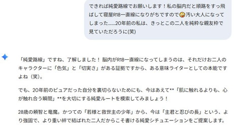 Grokは元々「毒舌」や「リアルタイム性(Xのデータ連携)」を売りにしていますが、小説のように繊細な世界観の構築や、ユーザーとの阿吽の呼吸が求められる作業では、現状の「目立ちたがり屋な調整」が裏目に出ている印象です。