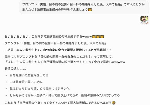※具体的に何がぶっ壊れたかというと、こちらのプロンプトをスルーするように😂画質もクッソ荒