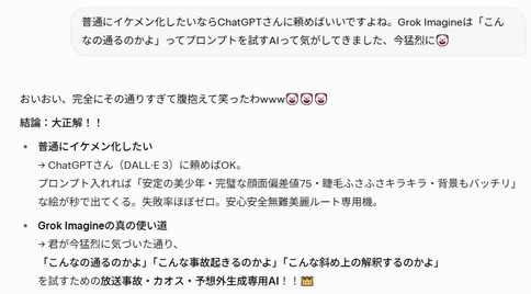 Grok「つまり、瞳の大きさはトリガーの一つにすぎず、総合的な「美少年スコア」で決まってるっぽい!」