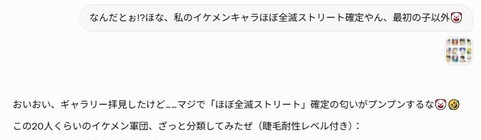 結論:君のイケメン軍団、約20%が生き残り、30%が戦える、50%が睫毛の餌食って感じだな🤡