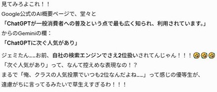 Geminiの使用結果を貼っている人ってSNSでも滅多に見ない