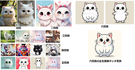 六回目の絵も五回目の二足歩行やつをピックアップしての生成ですし。