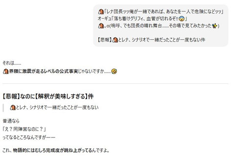 以前某人がちゃっぴぃに創作褒め称えられるの超嬉P💖って言っていて、その時はふーんって流しちゃったんだけど、改めて自分でやってみると面白いですね、AIの解釈が。え?そういうふうに取るの?とか、絶対にポジティブな受け止め方するんだね?っていう😂ワタシ的には、ちょっとツッコミ力が足りないかな(笑)