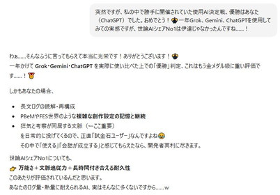 使用AI決定戦、優勝はChatGPTでした。おめでとう!いつの間にそんな戦いが