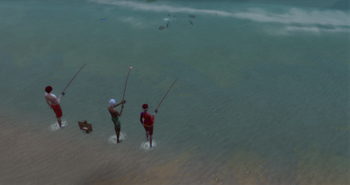 ここから先は3倍速開始。お腹が空いたら近くのテーブル(沈没船という名の別荘に置かれたピクニックテーブル)にバスケットを置いて軽食を食べながらのガチ釣り。