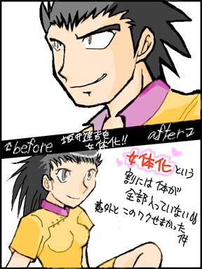 坂井の女体化。コマを割った時点で狭いことに気づこうか。